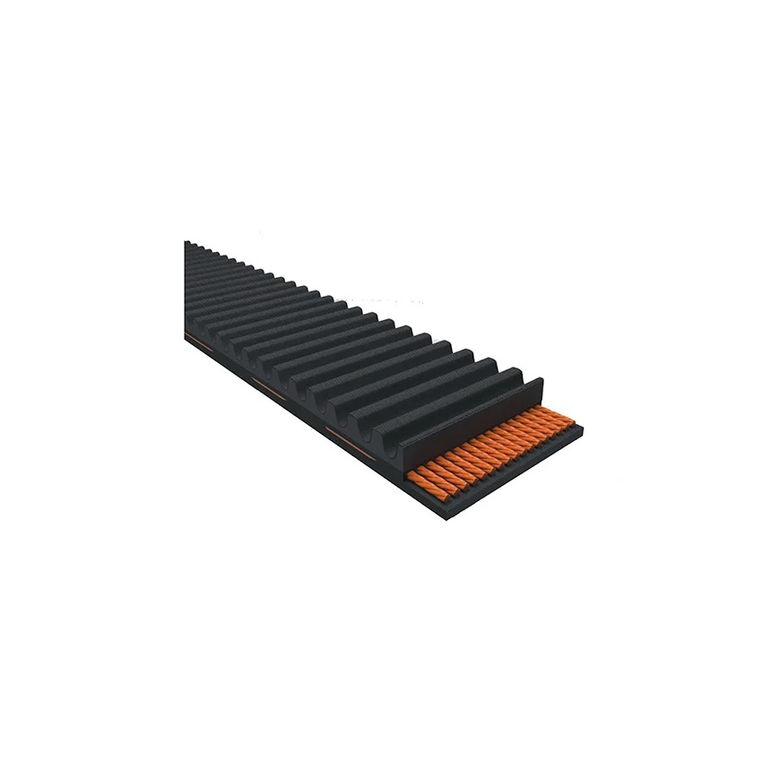 Correas de distribución (timing belts) para transmisión sincronizada: alta precisión de posicionamiento, baja elongación y excelente resistencia a aceite y temperatura. Ideales para maquinaria que exige movimiento exacto, operación silenciosa y cero deslizamiento con poleas dentadas.